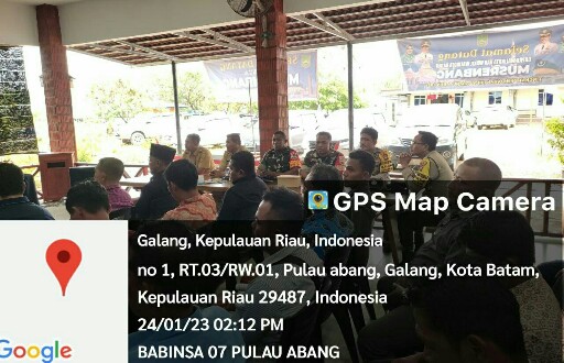 LiputanToday.Com (Batam) – Babinsa 07 Keluruhan Pulau Abang Serda H Purba bersama Babinsa Keluruhan Galang Baru Sertu M Jaibakal Menghadiri undangan Musrenbang Tingkat Kelurahan Pulau Abang dan Kelurahan Galang Baru Tahun 2023 RKPD tahun 2024 bertempat di restoran Gek Moi Pelabuhan Labun, Kecamatan Galang.
