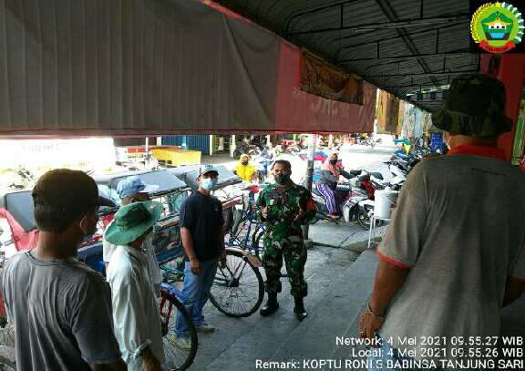 Dalam pelaksanaan Komsos Babinsa Kel. Tanjung Sari Koptu Roni Sitorus menghimbau dan memberi penekanan kepada para abang becak dan Ojek agar lebih mematuhi protokol kesehatan karna dalam 1 Minggu terakhir Becak dan Ojek menjadi proritas pembagian masker dan untuk itu tidak ada alasan tidak mengenakan masker. ucap Babinsa.