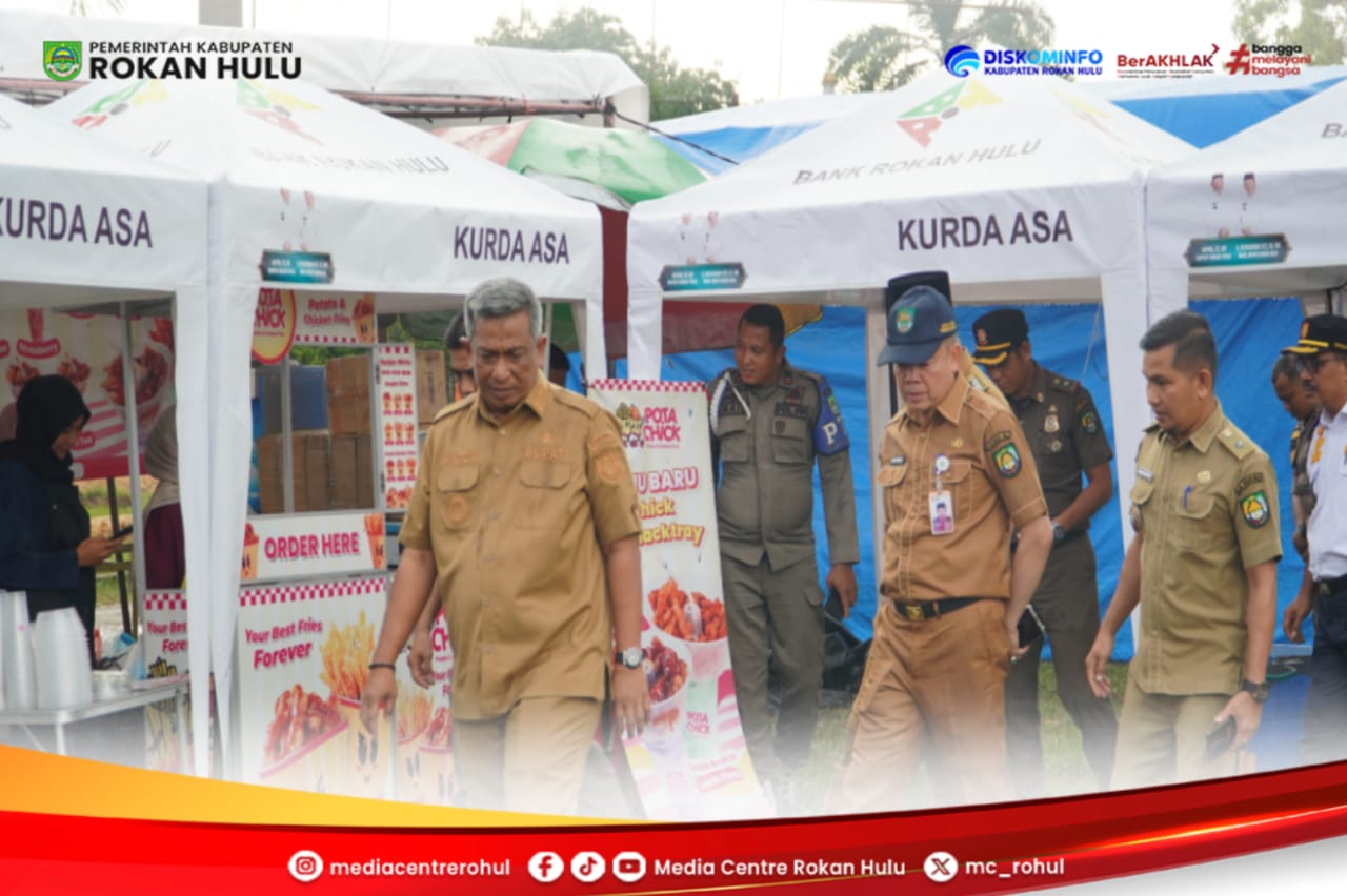 Bupati Rokan Hulu Anton, ST, MM hadir langsung meninjau lokasi kegiatan. Dengan langkah santai dan penuh perhatian, Bupati Anton menyapa satu per satu para pelaku UMKM yang berjualan di stan-stan bazar. Kehadirannya turut didampingi Sekretaris Daerah M. Zaki, S.STP, M.Si, para Kepala OPD, serta Kepala Desa Pematang Berangan.