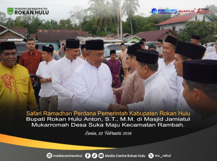 ROHUL — Senja di Desa Suka Maju, Kecamatan Rambah, terasa berbeda pada Senin (23/2/2026). Aroma masakan khas berbuka puasa menyeruak di antara obrolan hangat ratusan warga yang memadati halaman Masjid Jamiatul Mukarromah. Hari itu bukan sekadar agenda biasa, hari itu adalah momen “pulang kampung” bagi orang nomor satu di Rokan Hulu, Bupati Anton ST, MM.