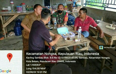 LiputanToday.Com (Batam) – Babinsa 07 Sambau, Koramil 03/Nongsa, Serda Husni, Melaksanakan Komsos bersama Warga bertempat di RT 05 RW 01, Kelurahan Sambau, Kecamatan Nongsa.